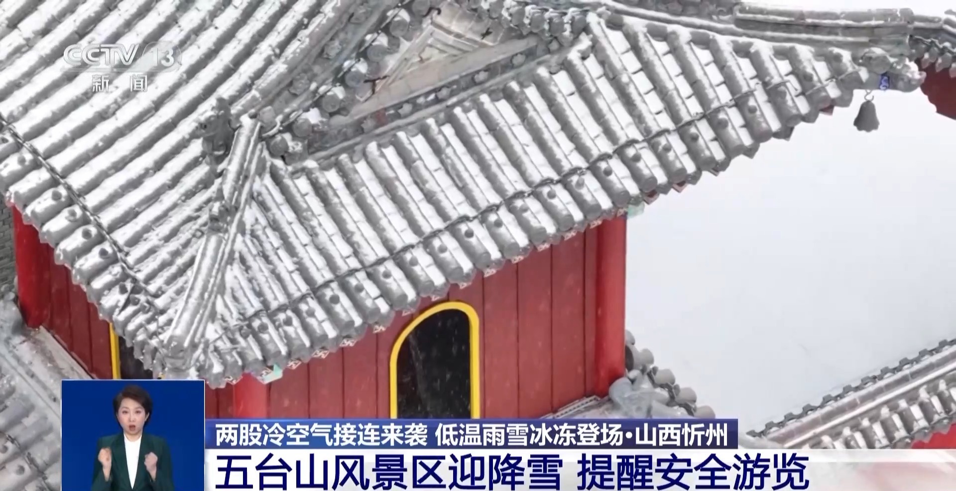 今天(25日),位于山西忻州的五台山风景区迎来了降雪。从空中看去,整个五台山风景区银装素裹,雪花洋洋洒洒地落在五台山的群峰、古建与苍松间,将整个景区装点得静谧而庄严。在景区核心区,红墙黛瓦与白雪相映成趣,游人漫步其间,沉浸式感受五台山风景区冬日雪景的独特魅力。景区提醒,在欣赏雪景的同时,务必注意防寒保暖与出行安全,在台阶、坡道等湿滑路段小心慢行,安全游览。